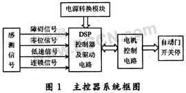 自動門測控系統(tǒng)的主控制器采用TI DSP,型號為TMS320C2812,是先進的32位定點DSP芯片,他不但運行速度高,處理功能強大,并且具有豐富的片內(nèi)外圍設(shè)備,便于接口和模塊化設(shè)計,特別適合于有大批量數(shù)據(jù)處理的測控,利用DSP技術(shù)建立有效的信號處理模型以抑制干擾噪聲,達到信噪比最大,對本系統(tǒng)的直流無刷電機的測控完全能夠保證其實時性。直流無刷電機采用的是ALC-TEL的BG65PI電機,他具有高效率、省電、低噪音、高轉(zhuǎn)速、高扭力、連續(xù)使用不發(fā)熱等特性,大大超越傳統(tǒng)AC伺服馬達,配合T型齒條同步帶,使門體自低速至高速的運行均具有超越的寧靜性,達到了超靜運行。測控系統(tǒng)設(shè)計為智能化控制,可隨意設(shè)定門扇的運行速度,并可設(shè)定任意開度狀態(tài);可自矯正使門扇保持平穩(wěn)動作;能夠自動檢測門的寬度以保持最佳運行狀態(tài);具有防夾功能,即當碰到障礙物或人體等異常狀況時,門扇自動反轉(zhuǎn)退出,運行過程中,由高速至低速平滑過度。